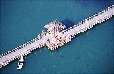 图G中有两个锚点:小船和凉亭,恰到好处的点缀打破了原本很泛味的对称。