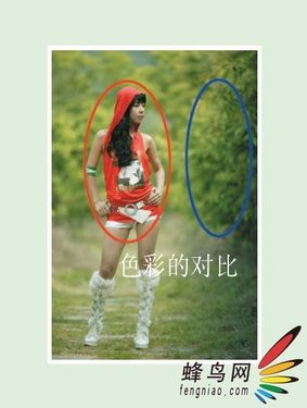 在取景中,要考虑到人物衣服的颜色,使该颜色与周围环境色彩形成对比。红衣女郎出现在红色系列背景中,背景和人物的颜色接近,应集中到人物身上的视线也会分散。