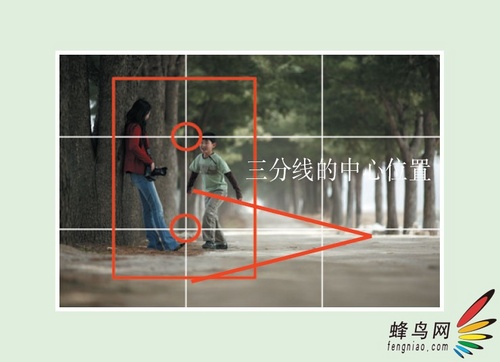 红色矩形框中的人物安排在三分法的线中心处,充分表现画面的稳定感。