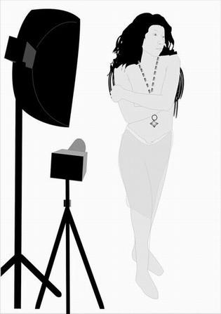 对很多拍人体的顾客来说,“循序渐进”是个比较容易接受的拍摄方法。如果一开始就从完全暴露的开始拍摄,顾客很容易因为紧张而表现得不自然。所以,开始的时候摄影师通常会选择一些饰物来对重点部位进行遮挡。如果饰物选择不当,使顾客过于留意饰物的遮挡作用,这样拍出来的照片仍难免僵硬呆板。解决这个问题的方法就是让饰物出现得合理,这样它的位置和动势就会很自然,顾客也会放松下来。