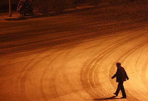 ??灯光下的雪景也韵味十足,这时,灯光色温已经超出了“自动”白平衡能够自动校正的范围,昏黄的色调和飘舞的雪花使“雪夜”的气氛更加浓厚。