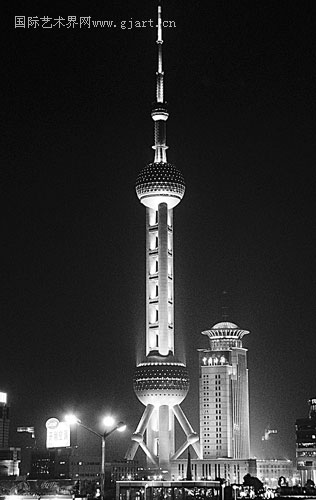 《东方明珠电视塔夜景》拍摄参数为光圈F2.8,快门速度1/8s,曝光量作了1.7档负补偿,使用索尼F717相机拍摄。