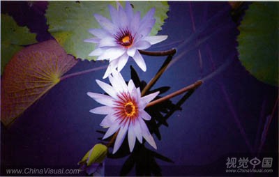 (2)因为必须尽量让花填满整个景框。所以要使用长变焦镜头。在这种情况下,我使用一个300mm变焦镜头,当没有使用三脚架时.通常你无法非常稳定地手持一个300mm镜头,所以我改进了一下。我从一座桥上俯拍看这个小池塘,把镜头放在桥栏杆上稳定相机和镜头,这种效果非常不错。情况不妙时,把相机或者镜头置于任何稳定的东西上。
