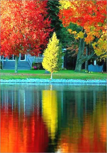 2.构图上应掌握:较远处的倒影与实景比例几乎是等大的;越靠近的倒影,则因视点高度的不同,显示其多少之分;倒影的多少与视点高度是成反比.除特殊需要外,一般不宜将倒影放在画面正水形成对称,应略偏某一边,使构图在统一均衡中又有变化,避免呆板。
