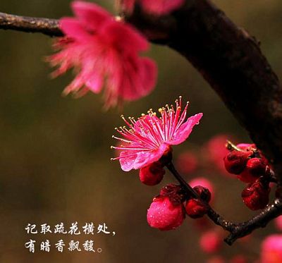 翻开日历,正值农历早春二月。乍暖还寒,虽是万物复苏,亦只是嫩翠已至,缤纷晚成。寻寻觅觅间,眼前一亮,姿容明艳花枝俊俏,却是红梅花儿开。