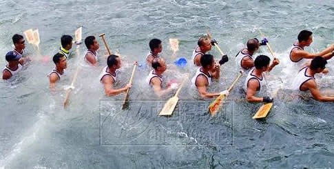 路透社记者 Kin Cheung 2002年6月23日拍摄自香港国际龙舟赛现场。一组沉了船的运动员在等待救援。画面只拍了水和船,隐藏去所有参照物,既最大限度地精练了画面,又大大突出了最有趣的情节,效果十分突出。