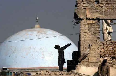 美联社记者 Emilio Morenatti 斋月第一天(10月15日)拍摄自阿富汗首都喀布尔。几个工人正在重建被战争毁坏的房屋,背景是蓝色清真寺( Blue Mosque)巨大的圆顶。清真寺的圆顶和递砖小工的动作巧妙地相互映衬,使这幅本来很普通的建筑施工画面,显得如此神奇和壮观。