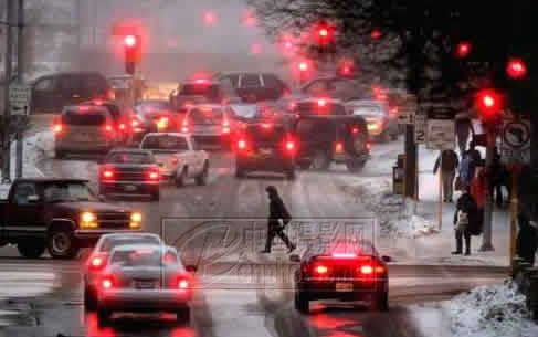 美国威斯康辛州州报(Wisconsin State Journal)记者斯蒂夫(Steve Apps)1月21日下午拍摄在麦迪逊。一场大雪使当地交通陷入混乱。