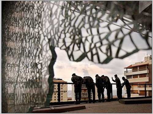 美联社记者Petros Karadjias 5月23日摄于黎巴嫩首都贝鲁特。几个黎巴嫩士兵正在一个接近jounieh的大型购物中心执勤。jounieh是黎巴嫩最主要的基督教港口城市,距贝鲁特只有15公里的距离。一个令人震惊的爆炸发生在这里,这里是基督教心脏地区商业中心,被炸的是一个叙利亚执不同政见者的大本营。