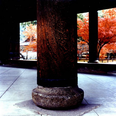 《清水寺的门柱》日本京都清水寺内的山门是富有特色的古建筑物,而门柱和基石的纹理和质感,如同古寺的年轮一般,十分富有历史感。使用120相机,80mm标准镜头。柯尼卡IMPRESAISO50胶片,使用三脚架拍摄。利用清晨淡淡的散射光,让山门之内的红叶与门柱的暖调的木纹有一个呼应。