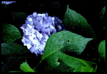 《花》夏天清晨,花园里的花和绿油油的树叶上沾满了露珠,晶莹剔透。利用早晨柔和的散射光拍摄。选用了85mm镜头,富士Velvia50胶片,考虑到景深,将光圈收到F16,光圈优先模式,并将相机放在三脚架上拍摄。