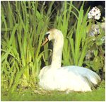 四周高高的芦苇丛,使这只天鹅的巢穴只在每天一小段时间里受到阳光的照射。在没有直射光的情况下,天鹅的白色羽毛往往呈灰色调,同时周围的植物也会失去其色彩活力。