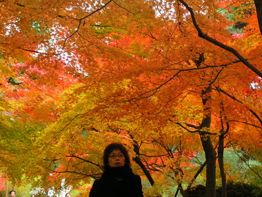 这样拍的话就很有红叶的感觉了。虽然那一天是多云,没有能拍出像燃烧的火焰一般的红色,不过红叶的气氛还是出来了的。