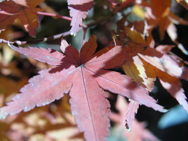 这一张是在晴天拍摄的。有些逆光,但是光线透过红色的叶片,比起从另一侧拍摄显得更红。